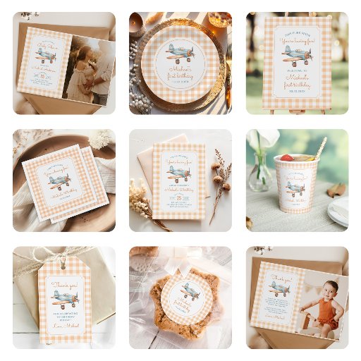 Gingham Airplane Boy BirthdayDesignt von Patrick Olson