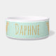 Niedliche Fawn und Creme Gingham Dackeln umgeben diese Ente Ei blaue grüne Hintergrund. Fügen Sie den Namen Ihres kleinen Wursthundes in einen lässigen, handgeschriebenen Schriftart in der Mitte der Schüssel. Passen Sie die Geschirr Ihres Hundes mit Ihrer Bauernküche an. Dieses klassische Muster und Farbschema eignet sich auch hervorragend für junge Eltern und Hütte-Ästhetik.