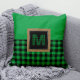 Gingham Green und Black Buffalo Kariert Monogram Kissen