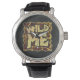 Uhr, Vintage Männeruhr mit schwarzem Lederarmband
