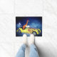 Giraffe im Weltraum - lustige Illustration einer Giraffe im Sportwagen, die im Weltraum schwimmt.