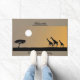 Herrliche Serengeti Thema Willkommen Doormat. Neutrale schwarze, graue und goldene Farbpalette. Mit Giraffen dekoriert, ein afrikanischer Baum - und ein schöner Mond. Erinnert euch an einen Sonnenuntergang. Personalisieren Sie Ihren Text/Ihren Namen. Schönes Hauswärmeschenk!