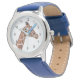 Kinderuhr aus Edelstahl mit blauem Lederarmband