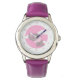 Uhr, Kinderuhr aus Edelstahl mit rosa Lederarmband