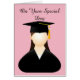 Auf dieser Grußkarte steht ein süßes, Clip-Art-Bild eines Mädchens in Kappe und Kleid für Abschluss. An der Kartenvorderseite steht "On Your Special Day" und innen steht: "Möge Ihre Zukunft hell sein, Wir sind so stolz auf Sie, Herzlichen Glückwunsch zu Ihrem Abschluss!". Eine süße Karte, die an ein Familienmitglied oder einen Freund geschickt werden kann!