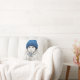 A young girl in a cozy blue knitted hat gently holds a handful of vibrant blue forget-me-not flowers, perfectly capturing the moment's innocence and charm in an enchanting three-dimensional artwork