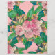 Ein griechisch-braunes, elegantes aquamarin grünes Blattwerk, niedliche, orangefarbene Blume, die mit rosa, rosa, blubblegum rosa, gelben, orangefarbenen und weißen Blume gefüllt sind, traumhafte romantische Frühlingshäuschen-Rose, Blumen- und Blume-Knöpfe auf einem massiven, hellrosa Trend. Dieses skurrile, schicke, feminine, Vintage Erscheinungsbild ist ein originales botanisches Muster, das sich perfekt für den Alltag, die Wohngestaltung, Feiern und spezielle Tagesdekorationen eignet.