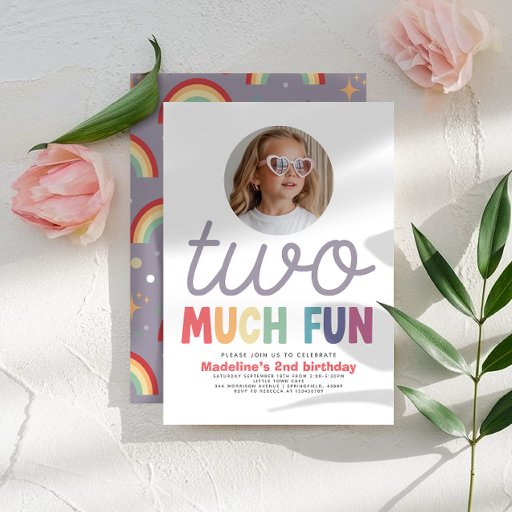 Girls Rainbow Two Much Fun 2nd Birthday PartyDesignt von Aimee Marie Gray