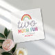 Celebrate turning two with these adorable “Two Much Fun” birthday napkins! Featuring a modern retro rainbow, colorful font and space to add your child’s name on the front. Perfect for a 2nd birthday party.
