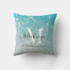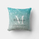 Girly Aqua Blue Silver Ombre Glitzer Monogram Name Throw Kissen