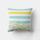 Ein frühes, blumengeschmücktes, quadratisches Kissen mit hübschen, gelben und weißen Gängen, das mit einem angesagten Aqua und einem weiß gestreiften Hintergrund mit einem Streifen aus Buttergelb einen modernen Pop verleiht. Personalisieren Sie dieses ultra mädchenhafte Design, indem Sie Ihren Namen hinzufügen.