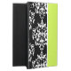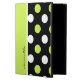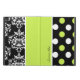 Hübscher Fall iPad Airs 2, mit errichtet im Stand und in den Grafiken von drei Streifen der verschiedenen Muster. Ein Schwarzweiss-Damastmuster, festes Chartreuse und ein Schwarzes mit den weißen und chartreuse Tupfen. Personifizieren Sie den schwarzen Text zum Anzug Ihr Bedarf. Macht eine ausgezeichnete Geschenkidee.