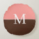 girly pink and brown monogram round pillow , gift for family