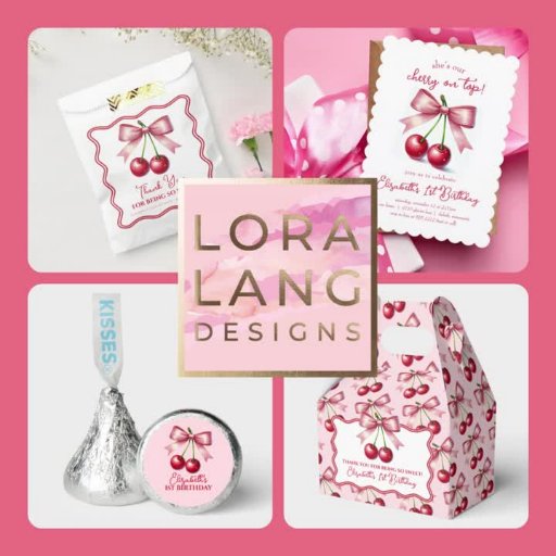 Girly Pink Coquette Cherry 1st Birthday CollectionDesignt von Lora Langowski
