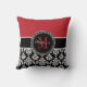 Schwarzes Damast-rotes Monogramm-personalisiertes Kissen. Entwurf durch Elke Clarke ©. Fertigen Sie mit Ihrem Namen und Monogramm besonders an. Ändern Sie die Hintergrundfarbe und Monogrammfarbe auch, wenn Sie Ihr Wurfskissen vollständig personifizieren mögen, um Ihre Schlafzimmerfarben zusammenzubringen. Ein großes Geschenk für Teenager und Mammen.