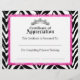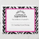 © 2013 Sozialite Designs. Unser mädchenhaftes Wertungszertifikat hat eine silberne Titara / Krone, zebra Streifen Muster Hintergrund und rosa Spitzen scallopierte Zertifikat Kante. Ein wunderschönes Zertifikat für einen Tagelöhner.