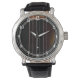 Uhr, Vintage Männeruhr mit schwarzem Lederarmband