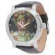 Uhr, Vintage Männeruhr mit schwarzem Lederarmband