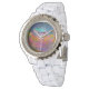 Eine wunderbare Damenuhr mit weißem Armband und grün-weiß-kariertem Ziffernblatt. Trägt sich ganz fabelhaft. Exzellenter Druck, sehr klare Farben. Schönes Design.