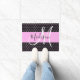 Glam und gürtnig schwarz-rosa Metallwabenmuster Bienenmuster Monogramm Name und Initial Doormat. Individuelle Name und Monogramm sind in einem eleganten, mit schwarzweißem Buchstaben versehenen Schrift mit rosa Hintergrund geschrieben. Sie können Textfarbe, Schriftart und Schriftgröße mit der Option Anpassen ändern.