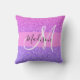 Lila, lila und rosafarbene Meerjungfrau Glitzern Gradientenmonogramm Name und Anfangswerfer Kissen. Individuelle Name und Monogramm sind in einem handgeschriebenen, eleganten Skript mit rosa Hintergrund geschrieben. Ein perfektes Geburtstag- oder Weihnachtsgeschenk!