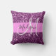 Glam lila Glitzer Glitzern weiße Monogramm Name und erste Kopfkissen werfen. Individuelle Name und Monogramm sind in einem handgeschriebenen, eleganten Skript mit rosa Hintergrund geschrieben. Sie können die Textfarbe, den Schriftart und die Schriftgröße mit der Option Anpassen ändern. Ein perfektes Geburtstag- oder Weihnachtsgeschenk!