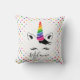 Das Glam Rainbow Unicorn Throw Kissen, entworfen von Enchantfancy Design Company, zeichnet sich durch die Kontur eines Einhorngesichts aus, das mit glamourösen Wimpern, Ohren, Haartuft und einem fabelhaften, hellen Regenbogen-Einhornhorn ausgestattet ist. Ein Muster von Regenbogenstern betont den Hintergrund. Personalisieren Sie mit Ihrem Namen! Dieses Kopfkissen verleiht jedem Zimmer eine Touch Lustigkeit.