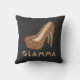 Klassiker, stilvolles Schwarzes und bezauberndes Kissen des GoldGlitters für funkelnd Glitter des Glamma- Imitatschwarzen schauen Hintergrund mit hohem Heels des ImitatgoldGlitter-Stiletts. Liest GLAMMA an der Unterseite in zusammenpassender Goldfarbe, Chicbeschriftung, die wie Festzeltlichter in der Kunst-Dekoart aussieht. Identische an Rückseite. Anmerkung: Alle Bilder werden gedruckt. Nicht tatsächlicher Glitter. Nobles bling Geschenk für hoch entwickelte Großmütter.