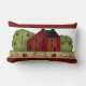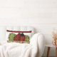 Kundenspezifisches Wurfskissen mit rotem saltbox Haus, Apfelbäumen und dem Gefühl, "haben Glauben, hüten Familie und genießen Freunde"; rote Grenze. Graphics©Country Leben-Grafiken