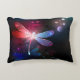 Glassierende, fliegende, rote Libelle mit durchsichtigen, detaillierten Flügeln auf dunklem, nächtlichem, leuchtendem Hintergrund mit tropischen Pflanze und Glühwürmchen. Rote Libelle.