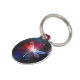 Glassierende, fliegende, rote Libelle mit durchsichtigen, detaillierten Flügeln auf dunklem, nächtlichem, leuchtendem Hintergrund mit tropischen Pflanze und Glühwürmchen. Rote Libelle.