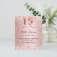 Für eine elegante Quinceañera, 15. Geburtstagsfeier. Hintergrund mit rosafarbenem Farbverlauf. Dekoriert mit Rose Gold Imitate Glitzer Staub. Personalisieren und fügen Sie einen Namen und Party-Details hinzu. Der Name wird mit einem handgeschriebenen Stilskript geschrieben. Nummer 15 wird mit einem Schriftart im Ballonstil geschrieben.