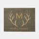 Die personalisierte Fußmatte der Land ChicleinwandgoldGlitterrotwild-Geweihe, die für einen Land Weihnachtsfeiertag Brown, schäbiges rustikales Leinwand-Imitat perfekt ist, masern Hintergrund. Personalisierter Familienname an der Unterseite in der Goldfarbe, elegante Buchstaben. Riesige, zusammenpassende Monogramminitiale mit einem Schatteneffekt und Familie stellten das Jahr her oben, das über einem Paar von festlichem, GoldGlitterdollar-Rotwildgeweihe zentriert wurde. Rustikales Willkommen für Gäste vor einem gemütlichen Blockhaus. Land Chic, mit Monogramm Housewarminggeschenk für Familie oder einzigartiges Polterabendgeschenk für die Jungvermählten. Anmerkung: Alle Bilder werden gedruckt. Nicht tatsächlicher Glitter oder Leinwand. Eleganter Dekor für die Feiertage oder für die Rotwildjäger- oder Tierliebhaber. Putzen Sie oben Ihr vorderes Portal mit einem GoldGlitterfeiertag oder einem Waldwaldtierthema heraus!