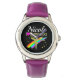 Uhr, Kinderuhr aus Edelstahluhr mit lila Lederarmband