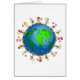 Eine Gruppe von Kindern mit Herbstblättern stehend auf der ganzen Welt.
