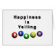 Der Text sagt "Glück ist das Schreien von BINGO" Das Wort Bingo wird auf 3D Bingokugeln mit jeweils einer anderen farbigen Kugel für jeden Buchstaben geschrieben. B ist rot, ich bin blau, N ist grün, G ist gelb, und O ist lila. Got einen Bingo-Liebhaber in deinem Leben. Das ist das perfekte Geschenk für sie.