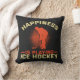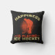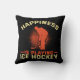 Hockey Wurfkissen mit einer Silhouette Hockey-Spieler liest Happiness spielt Eishockey!