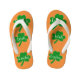 Lucky Irish ist in weißem Text auf grünen Kleeblättern geschrieben. Festliche Irland Fahne Farben in grün, weiß, orange für den irischen und Saint Patrick's Day oder zu jeder Zeit tragen. Spaß, einzigartige Flip Flops perfekt für Sommerspass, Strand und Urlaubsreisen für jeden. Mit weißem, schlankem Gurt und weißer Sohle dargestellt. Original Grafikarbeit von TamiraZDesign.