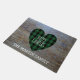 Niedliche rustikale karierte Campingsfußmatte macht ein großes Dekorgeschenk im Freienfür rvers, pensionierte Paare, Lagerbewohner und Naturliebhaber. Personalisierte, rustikale hölzerne Blickfußmatte lesen glückliche Lagerbewohner mit einer Textschablone für das Addieren Ihres personalisierten Familiennamens oder jeder kundenspezifische Text, die Sie an der Unterseite mit handgeschriebenen schauenden Buchstaben in wünschen, was Farbe oder Art, die Sie beschriften, bevorzugen Sie. In der Mitte ist ein trendy, schwarzes und grünes Büffel-Karo-Musterherz, das "glückliche Lagerbewohner" in der wunderlichen Art liest. Gegen ein Hintergrund-Foto des alten, beunruhigten rustikalen Holzes. Einzigartiges Ruhestandsgeschenk, auch. Seien Sie der Blick, der vor einem RV oder einem gemütlichen Blockhaus groß ist.