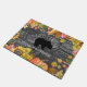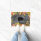 Niedliches, personalisiertes rustikales Dekorgeschenk des Herbstthemas für rvers, pensionierte Reisende, Wanderer, Lagerbewohner, Bärn- oder Tierliebhaber und Herbstliebhaber ist diese personalisierte Campingsfußmatte, die "glückliche Lagerbewohner" in handgeschriebenem Blick liest, gebogene Beschriftung über einer Silhouette des schwarzen Bären. Benutzen Sie die Textschablone, um Ihren Familiennamen unten im wunderlichen Arttext hinzuzufügen. Gegen einen Hintergrund des alten, grauen rustikalen Holzes. Fallthemagrenze mit Watercolorblick-Herbst-Blätter, Kürbisen, rustikalen Sonnenblumen und Wildblumen in den klassischen Herbstfarben der goldenen Gelbs, des Brauns, des Grüns, der Orange und des Rotes. Großes Ruhestandsgeschenk, auch. Seien Sie zu Hause vor einem RV oder einem gemütlichen Blockhaus im Herbstholz recht.