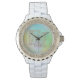 Eine wunderbare Damenuhr mit weißem Armband und grün-weiß-kariertem Ziffernblatt. Trägt sich ganz fabelhaft. Exzellenter Druck, sehr klare Farben. Schönes Design.