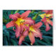 Rote und gelbe Tageslilien, die frisch gewässert werden und in der Sonne gefunkelt sind
