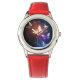 Kinderuhr aus Edelstahl mit rotem Lederarmband