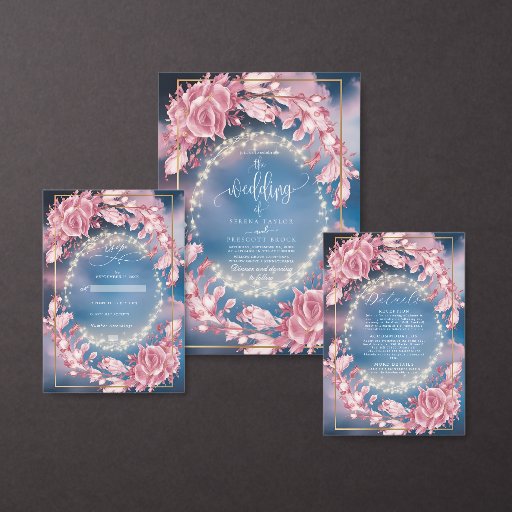 Elegante, moderne und zarte Mystische Glasende Rosy Blume und Glitzern Save the Date Hochzeitseinladung, die Sie mit Ihren Informationen anpassen können, um es zusätzlich zu besonderen. Das romantische minimalistische Design besticht durch eine hübsche und elegante Kalligraphie auf einem schönen Hintergrund mit einem sauberen und schlichten Look.