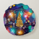 Dekorieren Sie den Weihnachtsstil mit unserem schönen und farbenfrohen Rundwürfelkissen mit leuchtenden Weihnachtsbeleuchtung Bokeh Golden Tree & Stars Design