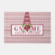 Erleben Sie den Urlaubssgeist mit diesem niedlichen Aquarellbrunnen Doormat mit einem Gnome, der eine rot-weiße Messe-Insel trägt, mitten in der Phrase "gnome sweet gnome". Der Hintergrund ist ein rot-weißes, feines, iselgestreiftes Muster.