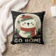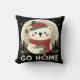 Ein humorvolles, urlaubsstipenorientiertes Kissendesign mit einem niedlichen Bären, der eine Weihnachtsmannmütze und einen Schal trägt und mit einem ernsthaften Ausdruck zeigt. Umgeben von festlichen Elementen wie Heilige, Beeren und Ziergegenstände fügt der Text "Go Zuhause" eine spielerische Drehung hinzu. Ideal für einen Urlaub im Dekor mit einer Touch von Spaß und Charme.