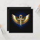 Golden ägyptischer Knöchel mit gemusterten, glänzenden Flügeln auf schwarzem Hintergrund. Magisches Symbol.
