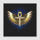 Golden ägyptischer Knöchel mit gemusterten, glänzenden Flügeln auf schwarzem Hintergrund. Magisches Symbol.