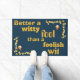 Herzlich willkommen bei einer Touch von Eleganz und Weisheit mit unserer Türmatte 'Gold on Blue'. Mit dem zeitlosen Zitat 'Lieber ein witziger Narr als ein dummer Witz' in luxuriösem Gold vor einem raffinierten blauen Hintergrund fügt diese langlebige Matte Ihrem Eingang sowohl Stil als auch Substanz hinzu. Lass es als tägliche Erinnerung, mit Witz einzutreten und Torheit hinter verlassen.
